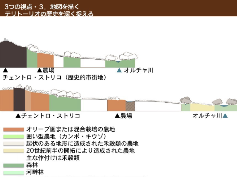 また、テリトーリオの自然を客観的に捉えた上で、人々がどのような農地を作ってきたか。この辺は前回ご説明したので先に進みますが、動画とテキストに興味があればぜひご覧ください。