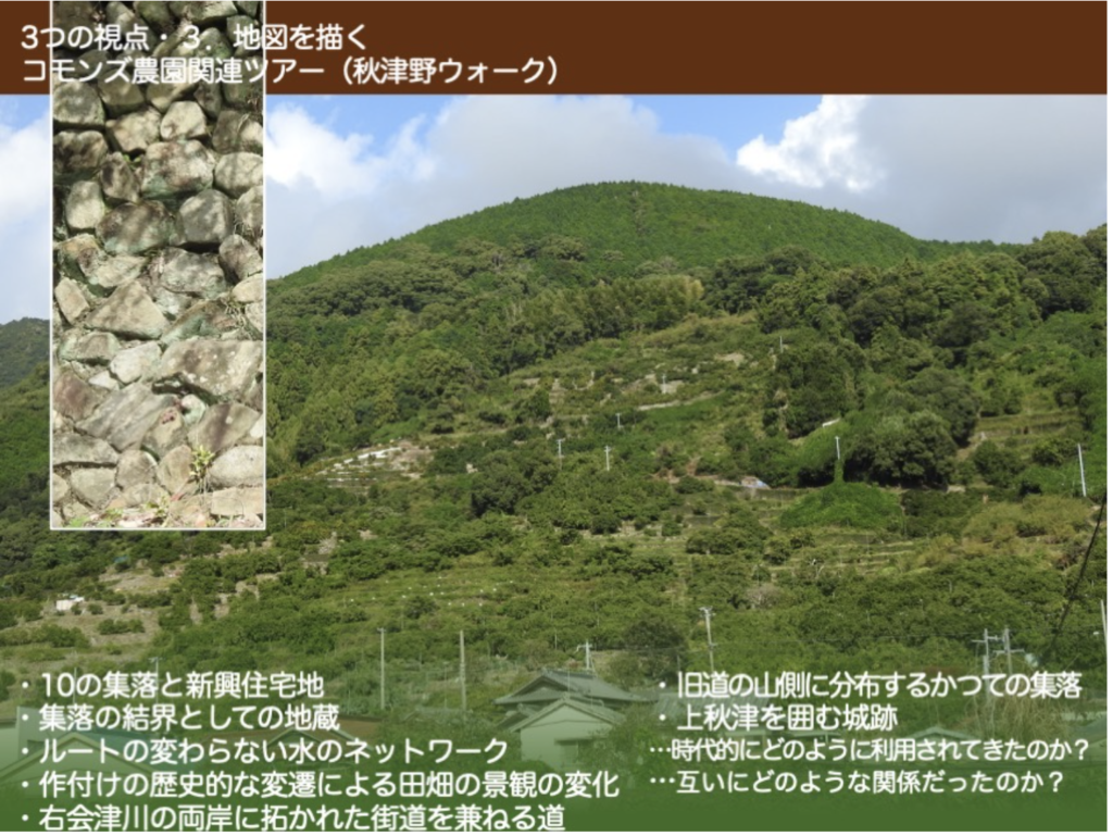 内容:コモンズ農園が位置する田辺市上秋津地区に焦点を当て、テリトーリオの視点から地域の歴史や文化を掘り起こします。