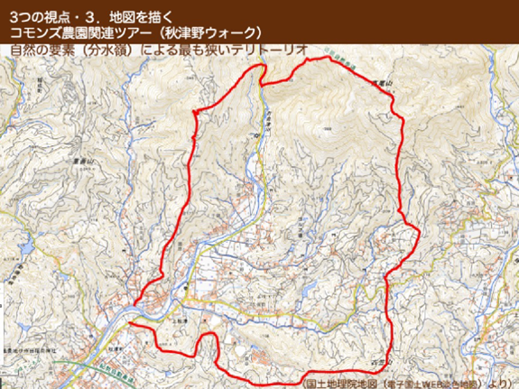 地域おこし、まちづくりという話題になると廣瀬さんからは違うと言われるでしょうが、その側面も含めて、コモンズ農園がテリトーリオのあり方を象徴する存在になるのでは、と考えています。さきほど、「入れ子」という話をしましたが、それこそテリトーリオの面白さです。(昼間のツアーで拝見した)上秋津も、最初は一つひとつの集落が自給自足だった、10の集落が川上神社の氏子衆としてひとつに集まって、今のテリトーリオをつくっています。さらにその周囲を取り囲む自然があり、伝承があるという段階があります。その最も小さな存在として、コモンズ農園が飛地的にある、私自身はそのようにイメージしています。